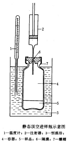 一些樣品中既含有揮發(fā)性組分又含有不揮發(fā)組分,如油漆、食品、塑料等,?捎眠@種方式進(jìn)樣分析其中可揮發(fā)的組分,頂空進(jìn)樣可以用最簡(jiǎn)單的靜態(tài)手工方式,也可以用吹掃-捕集動(dòng)態(tài)頂空自動(dòng)進(jìn)樣方式。簡(jiǎn)單的靜態(tài)手工進(jìn)樣瓶如下圖所示。