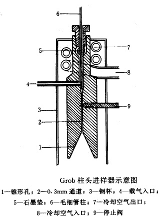 Grob在1978年設(shè)計(jì)的一種用注射器進(jìn)樣的柱頭進(jìn)樣器,可用于毛細(xì)管內(nèi)徑小于或等于0.3mm情況下的柱頭進(jìn)樣,使用的注射器外徑=0.23mm,內(nèi)徑=0.1mm,長(zhǎng)度=85mm。