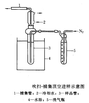 而吹掃-捕集頂空進(jìn)樣見(jiàn)下圖,目前HP公司和PE公司都有專門(mén)用于頂空進(jìn)樣的微機(jī)控制的自動(dòng)頂空進(jìn)樣設(shè)備(PE公司是HS-100型和HS-40型,HP公司是HP19396A型)。