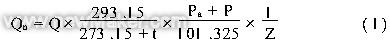 式中:Qn---標(biāo)準(zhǔn)狀態(tài)下的氣體體積量,m3;