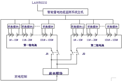 與電池巡檢儀不同,在這個(gè)系統(tǒng)增加了一個(gè)放電模塊,放電模塊能承受較大的沖擊電流,它接收監(jiān)控主機(jī)的放電命令,接通放電回路,電池通過(guò)負(fù)載放電,同時(shí)采集模塊將采集每節(jié)電池電壓的變化,在主機(jī)中得到了每節(jié)電池內(nèi)阻特性曲線。放電模塊也可作為長(zhǎng)時(shí)間放電負(fù)載,實(shí)現(xiàn)對(duì)電池容量的核對(duì)性測(cè)試及整組電池的活化處理。這個(gè)系統(tǒng)實(shí)現(xiàn)對(duì)蓄電池全方面的監(jiān)測(cè)和維護(hù)治理。