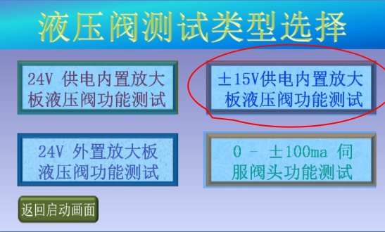4、點(diǎn)擊“±15V供電內(nèi)置放大板液壓閥功能測(cè)試”,進(jìn)入伺服閥信號(hào)選擇畫(huà)面;