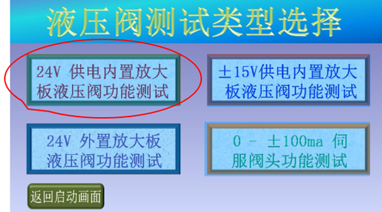 4、點(diǎn)擊“24V供電內(nèi)置放大板液壓閥功能測(cè)試”,進(jìn)入?yún)?shù)設(shè)定畫面;