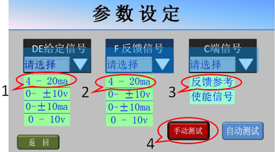 7、手動(dòng)測(cè)試基本正常后,點(diǎn)擊屏幕左下方的返回鍵,返回參數(shù)設(shè)定畫面;