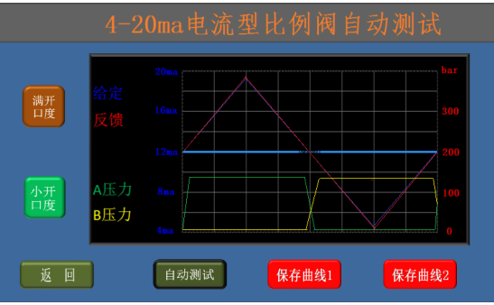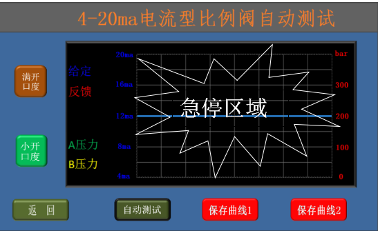 * 選擇小開(kāi)口度后點(diǎn)擊“自動(dòng)測(cè)試”可使比例閥從0開(kāi)口度逐漸增加到+20%開(kāi)口度,再逐漸減少到-20%,然后逐漸增加到0開(kāi)口度;